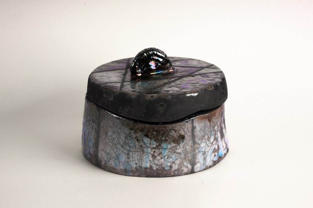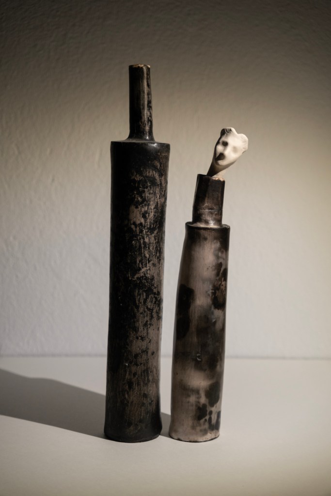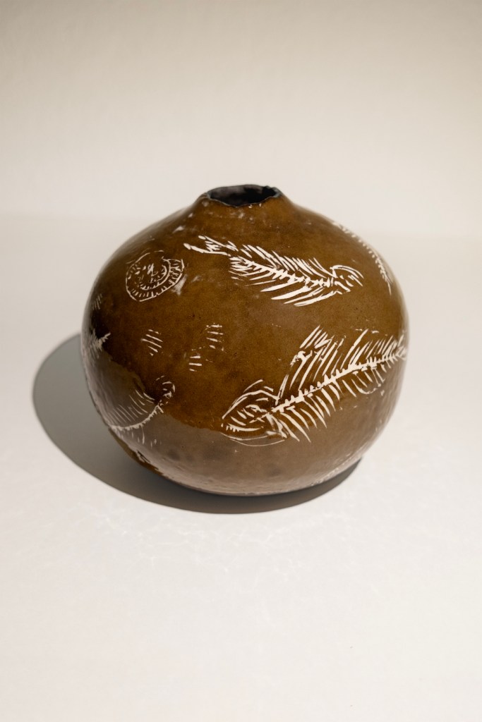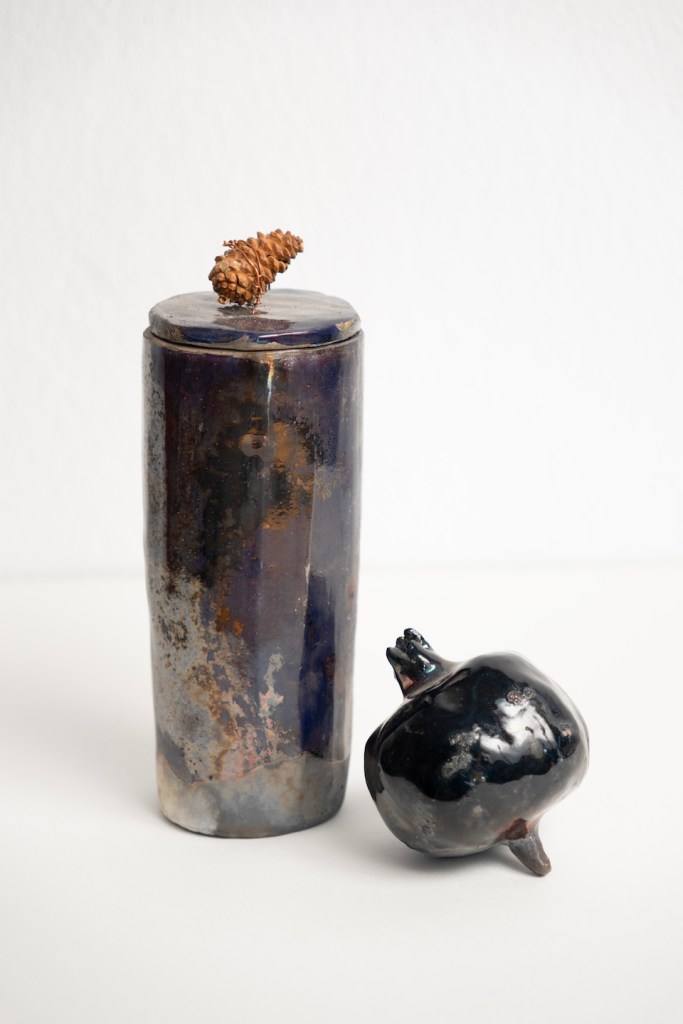 Σαν φυσική συνέχεια της ζωγραφικής της, γεννήθηκε το πάθος της για την ύλη του πηλού και την κεραμική, αντλώντας τα θέματα της, από όλες τις εποχές μέσα στις οποίες αυτή άνθησε, ξεκινώντας από την πανάρχαια τέχνη της αγγειοπλαστικής και καταλήγοντας στη νεότερη. Δημιουργεί έργα κεραμικής, με εικονογραφία διαχρονική μέσα από την παράδοση, στην οποία καθρεφτίζεται μέσα της και η καινοτομία. Έργα που συνδέουν τη κεραμική μορφή με το σχέδιο σε μια ενότητα, δίνοντας με αυτό το πάντρεμα, στην ιδιαίτερη πλαστικότητα του υλικού, την αίσθηση της γλυπτικής, του διακοσμητικού στοιχείου και της ζωγραφικής.